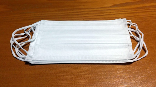 不織布マスク5枚がビニール袋に入れ、