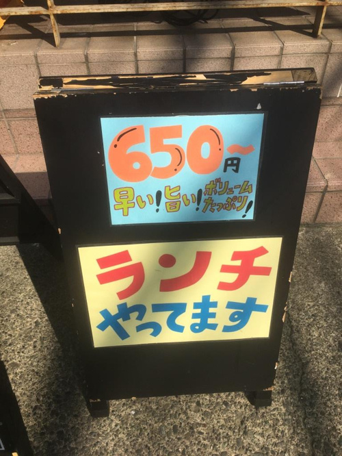 なかなか入店するきっかけがなかったのですが、ふと、店の入口をみると「ランチやってます」という看板に目が留まり、価格も650円~というリーズナブルな価格のようでしたので、このきっかけに入店してみました。