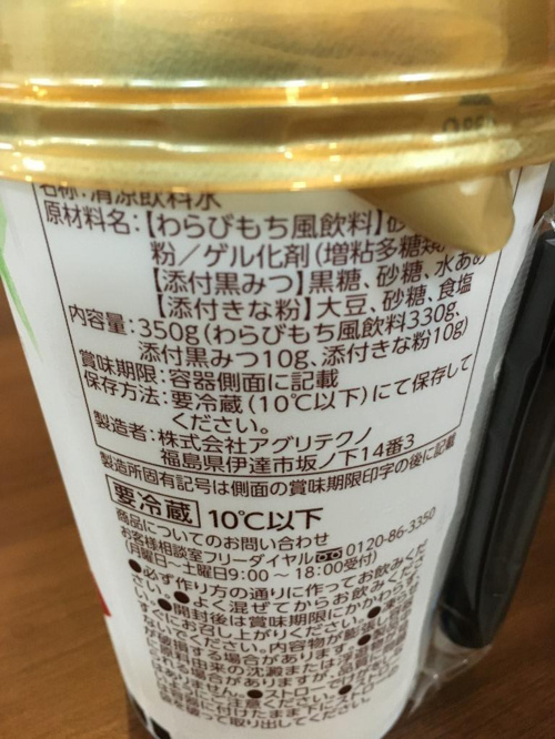 さて、話は変わりますが和菓子で「わらびもち」という商品がありますが、ファミリーマート限定で発売されている「わらびもちは飲みものです。」を紹介いたします。