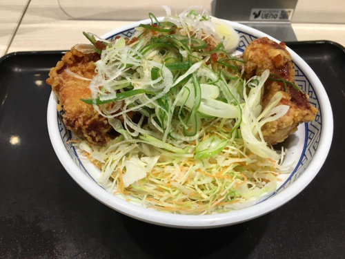 ササっと食べられるものと思い、こちらも久しぶりに吉野家に行って牛丼を注文しようと思ったところ「油淋鶏」という文字が飛び込んできましたので、「油淋鶏からあげ丼」を注文してしまいました。